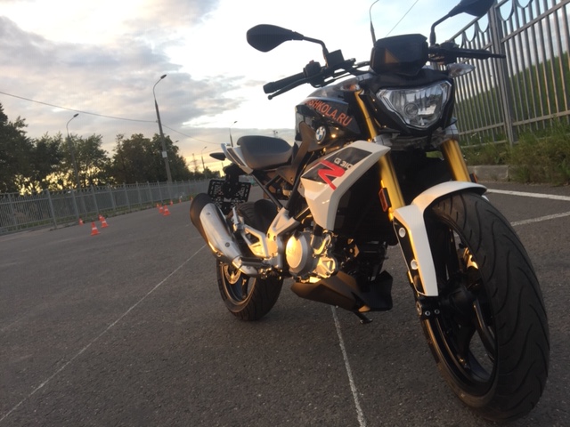 По просьбам страждущих приволокли на зимнюю площадку БМВ 310. Места для него, конечно, маловато, но охота пуще неволи.